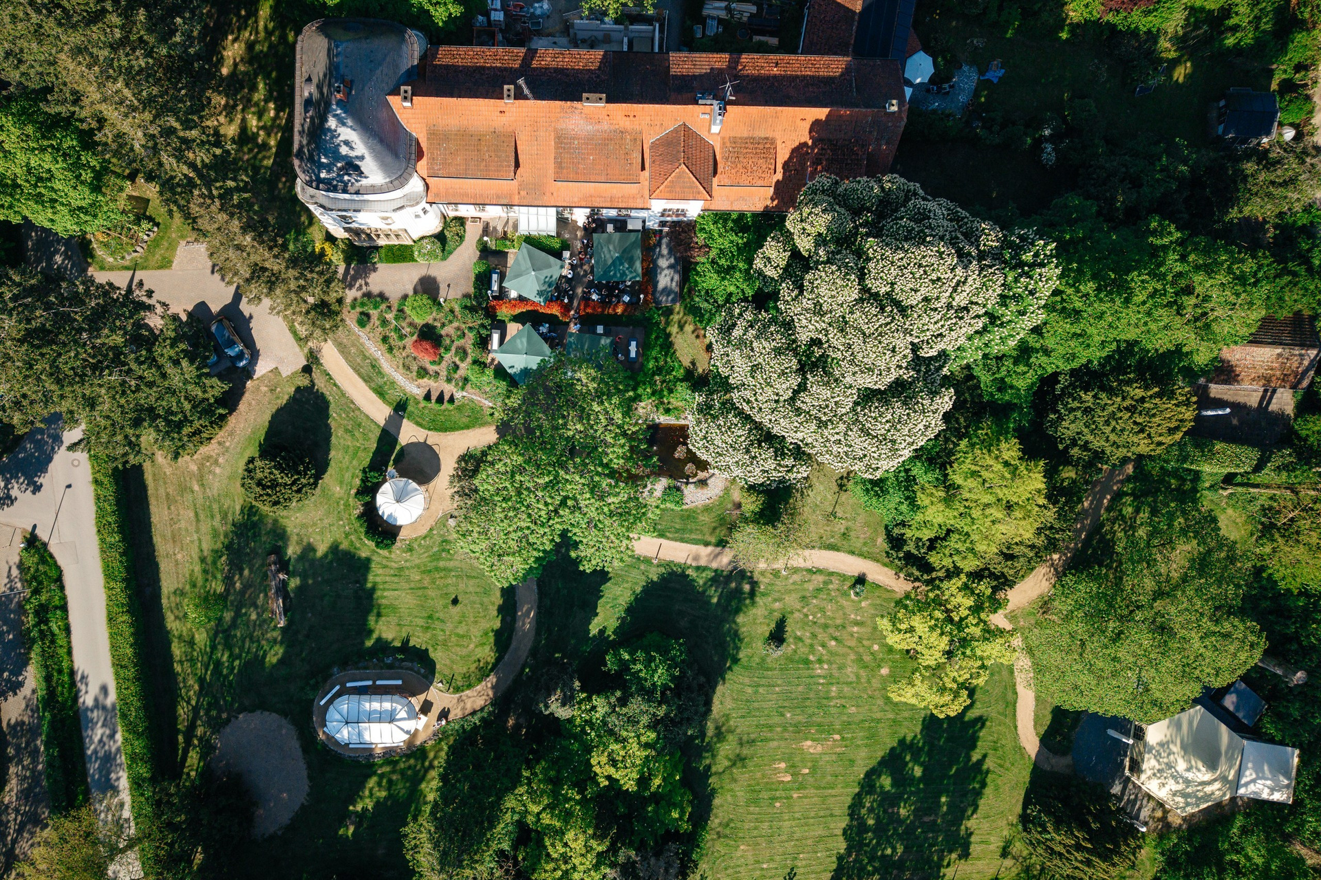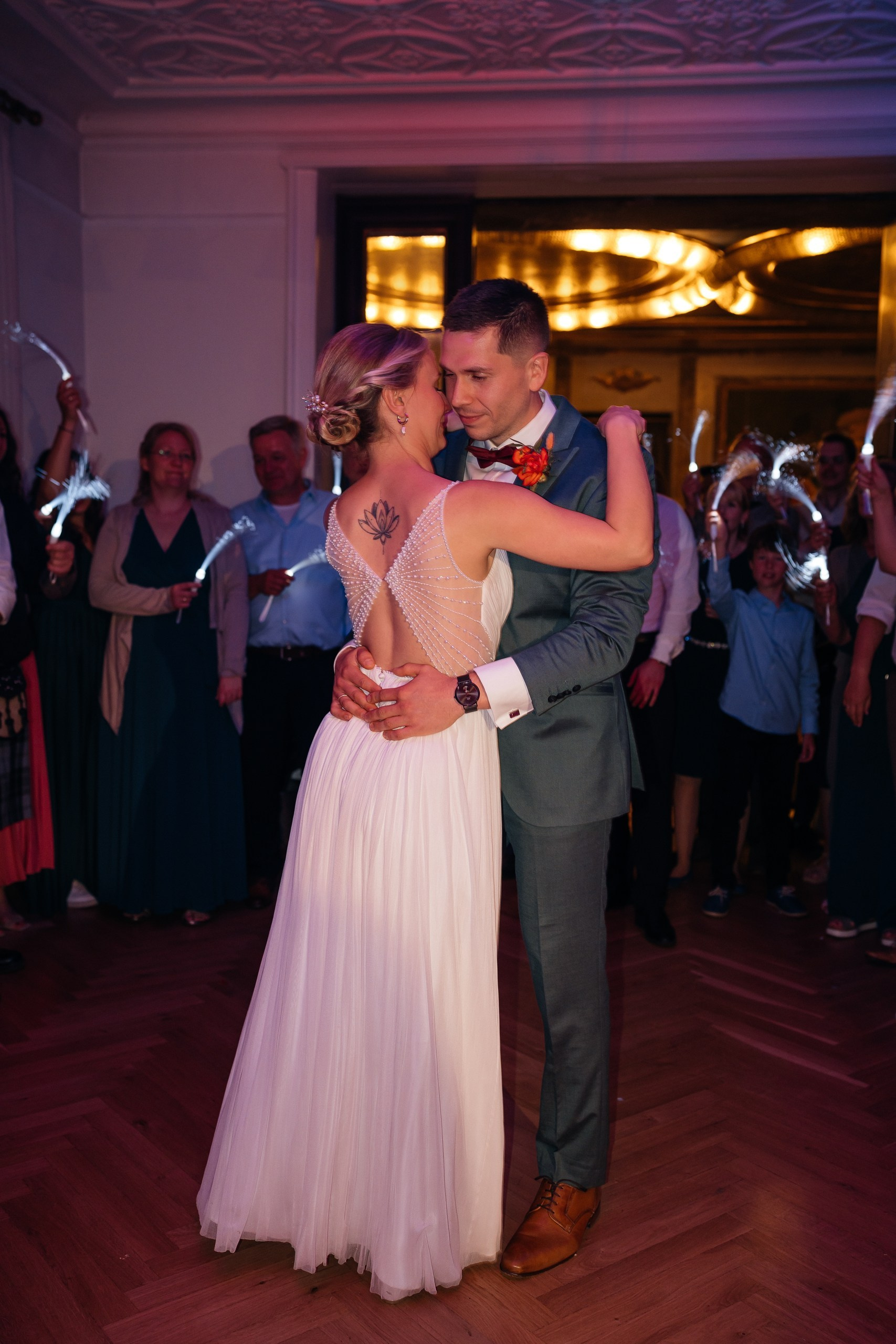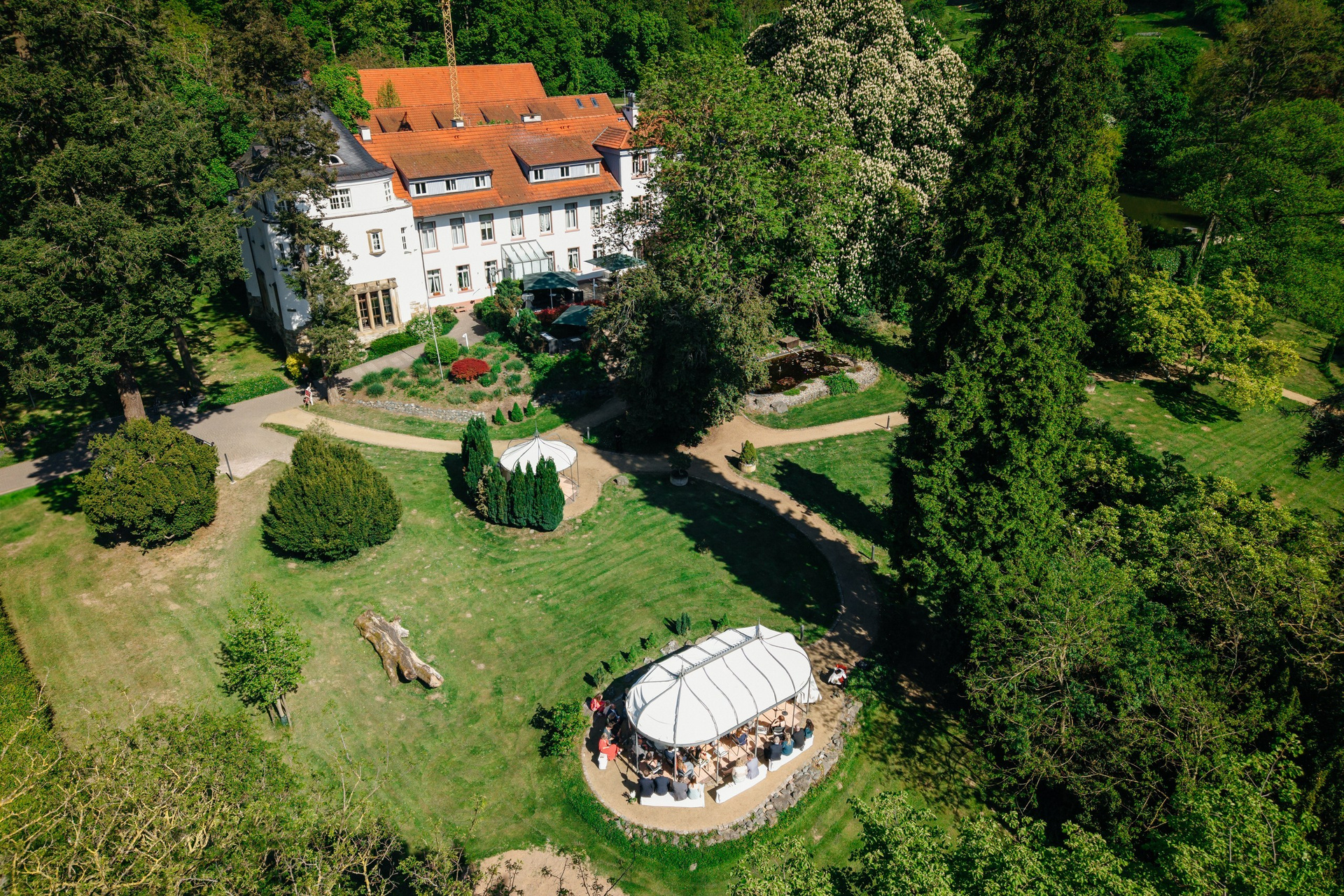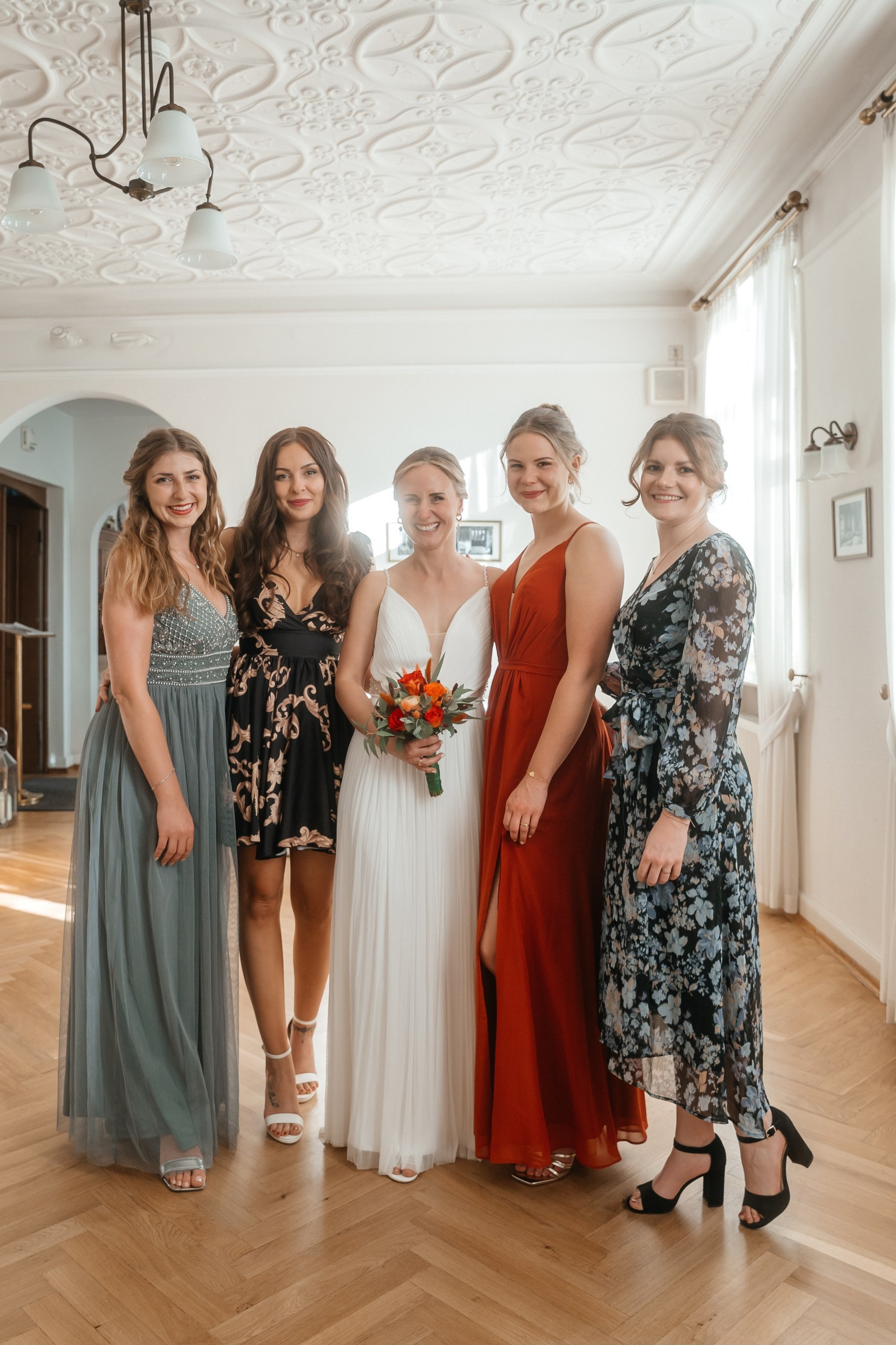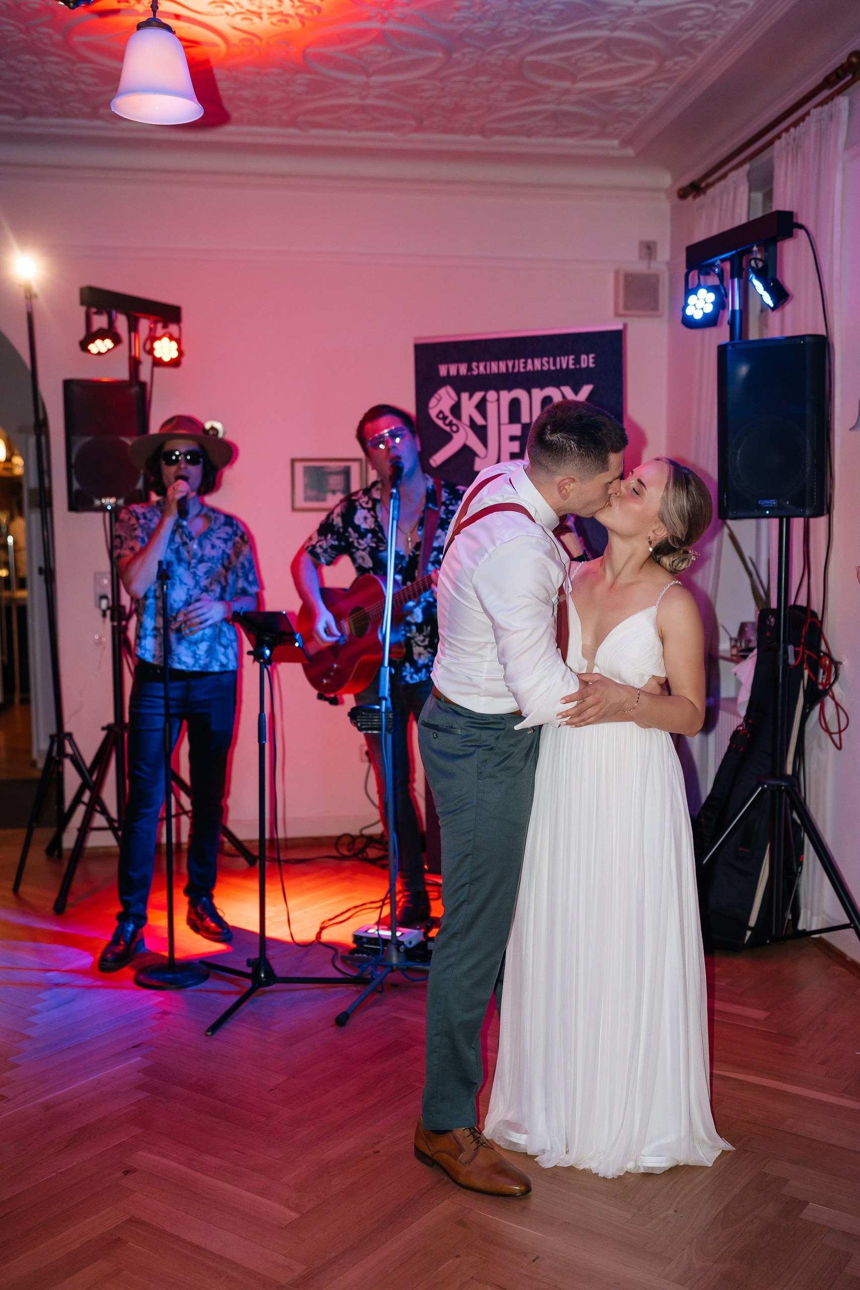 A spring wedding at the end of April, with 30°C sunshine, a free ceremony, tears, smiles, and pure emotion in every frame. The live band Skinny Jeans set the tone for the day, while drone footage showcases the historic venue. A golden-hour couple shoot captures intimate glances and genuine connection. Love, music, and nature blend into an unforgettable film — a source of inspiration for weddings in Hessen.