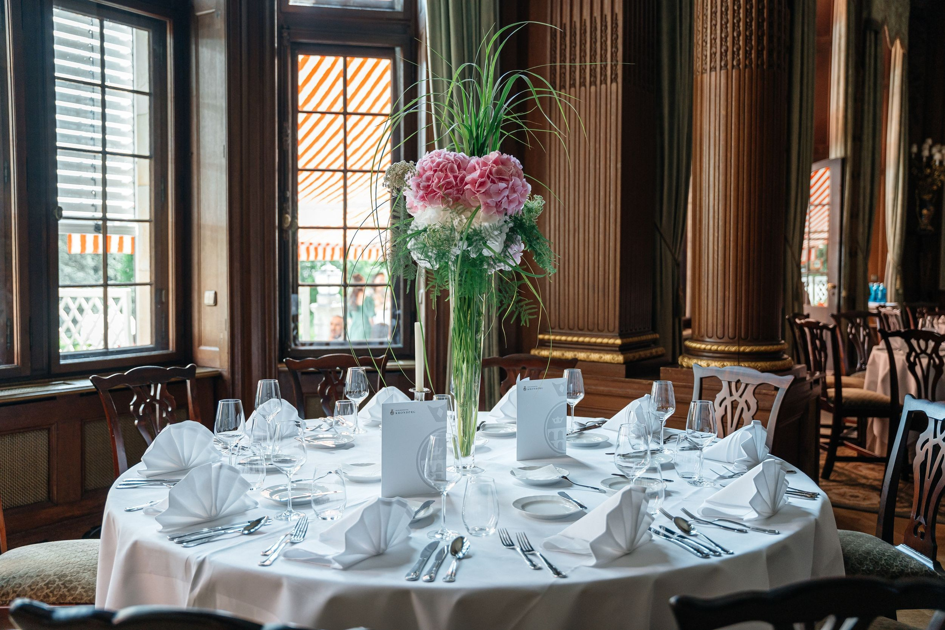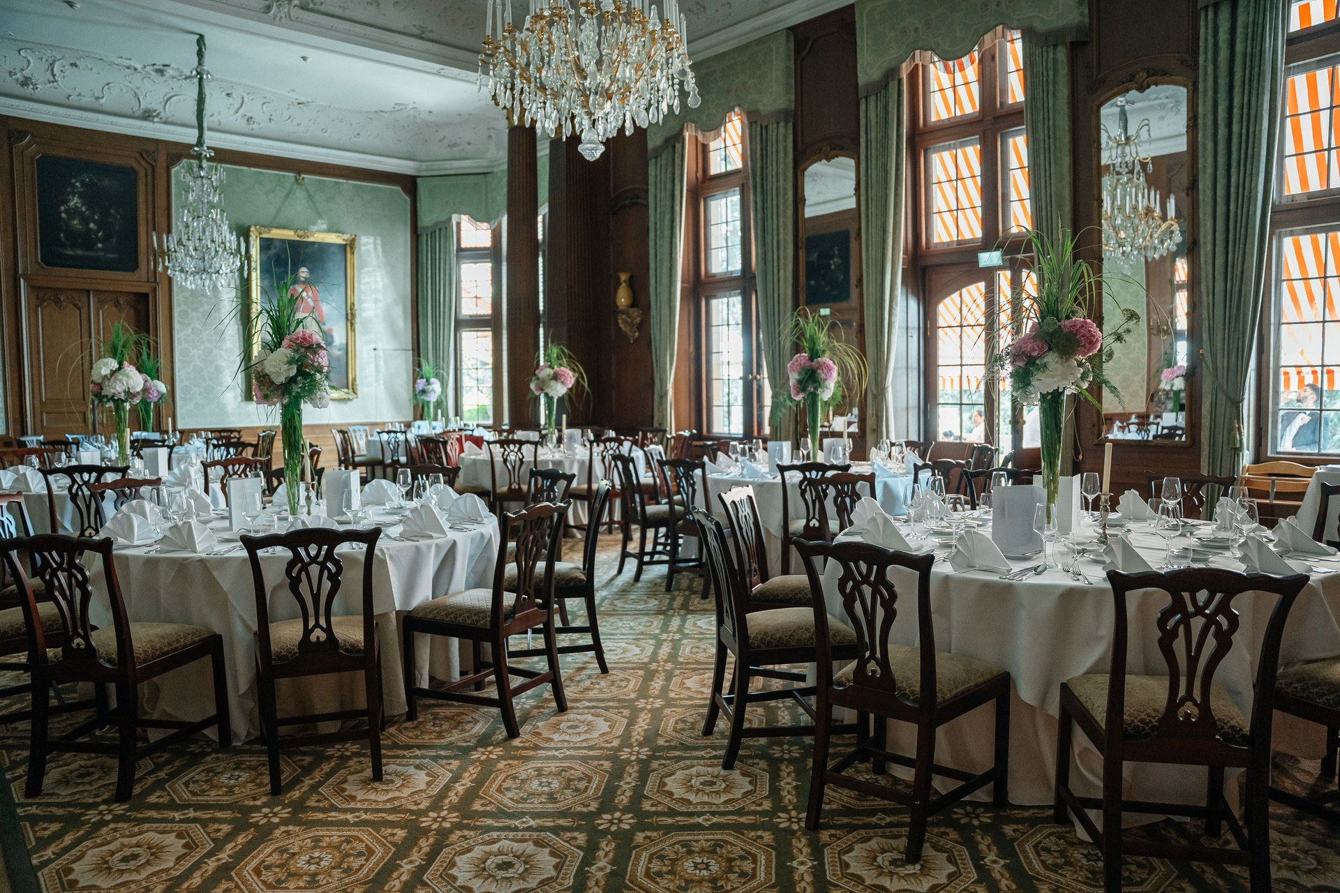 The celebration and dinner took place in the Green Salon of Schlosshotel Kronberg. Artworks on the walls, floral table decorations and soft lighting created a refined and welcoming atmosphere. The hotel’s kitchen completed the day with excellent food, making the celebration relaxed and memorable for everyone.
