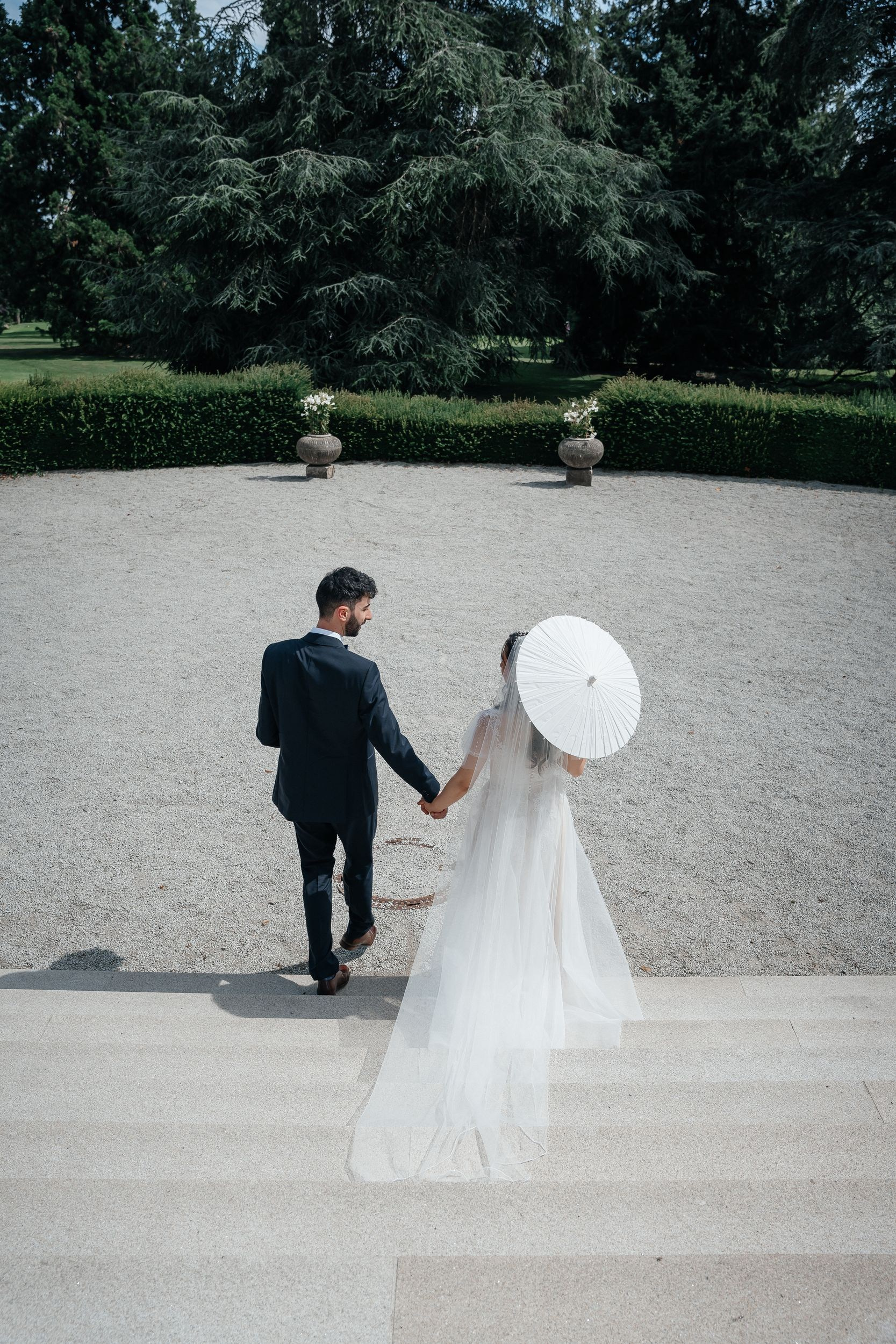 After the ceremony, guests were invited to a champagne reception on the terrace. With a view over the castle gardens and the historic building in the background, it was the perfect place to relax, talk and enjoy the moment. The setting also offered beautiful light for natural and timeless photos.