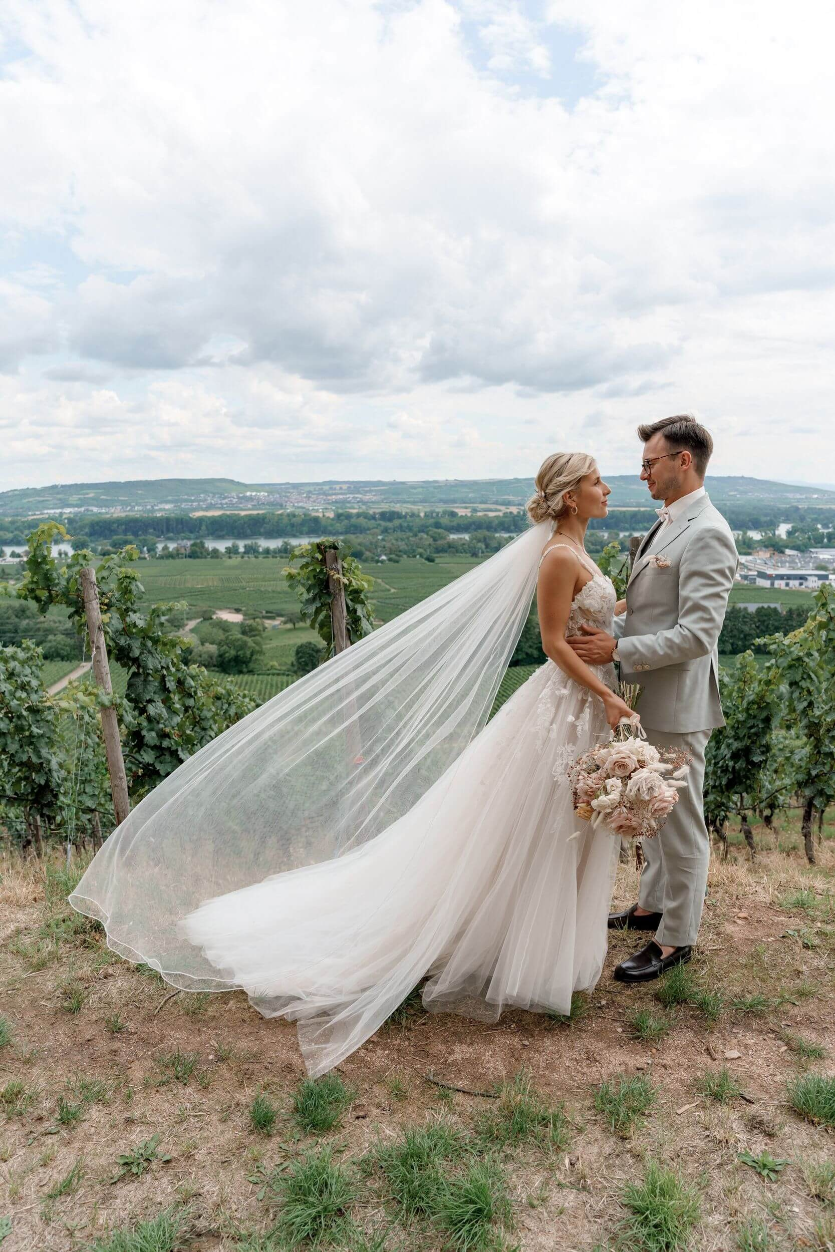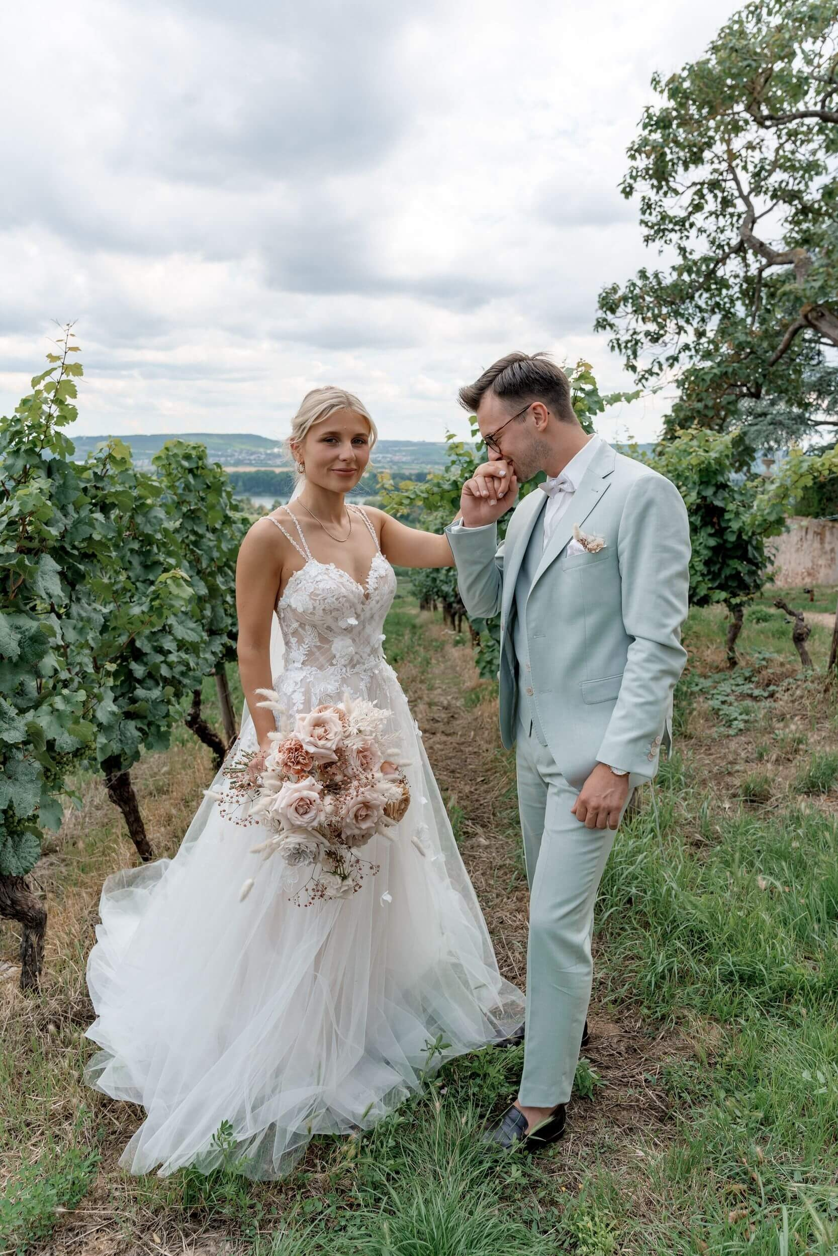 After the ceremony, we headed to Schloss Johannisberg for the couple shoot. The historic building, the surrounding vineyards and the soft summer light created a calm and timeless setting. The shoot felt natural and unforced, allowing the couple to enjoy time together before the evening celebration.