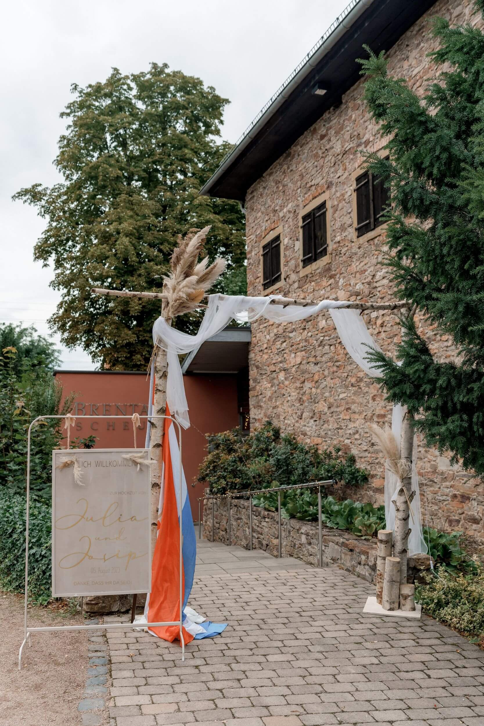 The celebration took place at Brentanoscheune in Oestrich-Winkel, located between castles and vineyards. The venue offered a warm and welcoming atmosphere for a lively summer celebration.